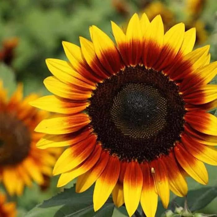 گل آفتابگردان با رنگ های زیبای حنایی، زرد و قرمز تیره یکی از گل های زیبای پابلند و مقاوم می باشد که با رنگ و قامت بلند خود زیبایی خیره کننده ای را به باغچه و یا محوطه شما به ارمغان می آورد و همچنین از این گل جذاب می توانید به عنوان گل شاخه بریده در دسته گل و یا سبد هدیه استفاده کنید.این گل زیبا به آبیاری متوسطی نیاز دارد و نور دوست بوده، بنابراین در آفتاب کامل رشد خوبی دارد. با توجه به پابلند بودن رقم بهتر است در مناطقی کشت شود که کمتر در معرض باد قرار می گیرد